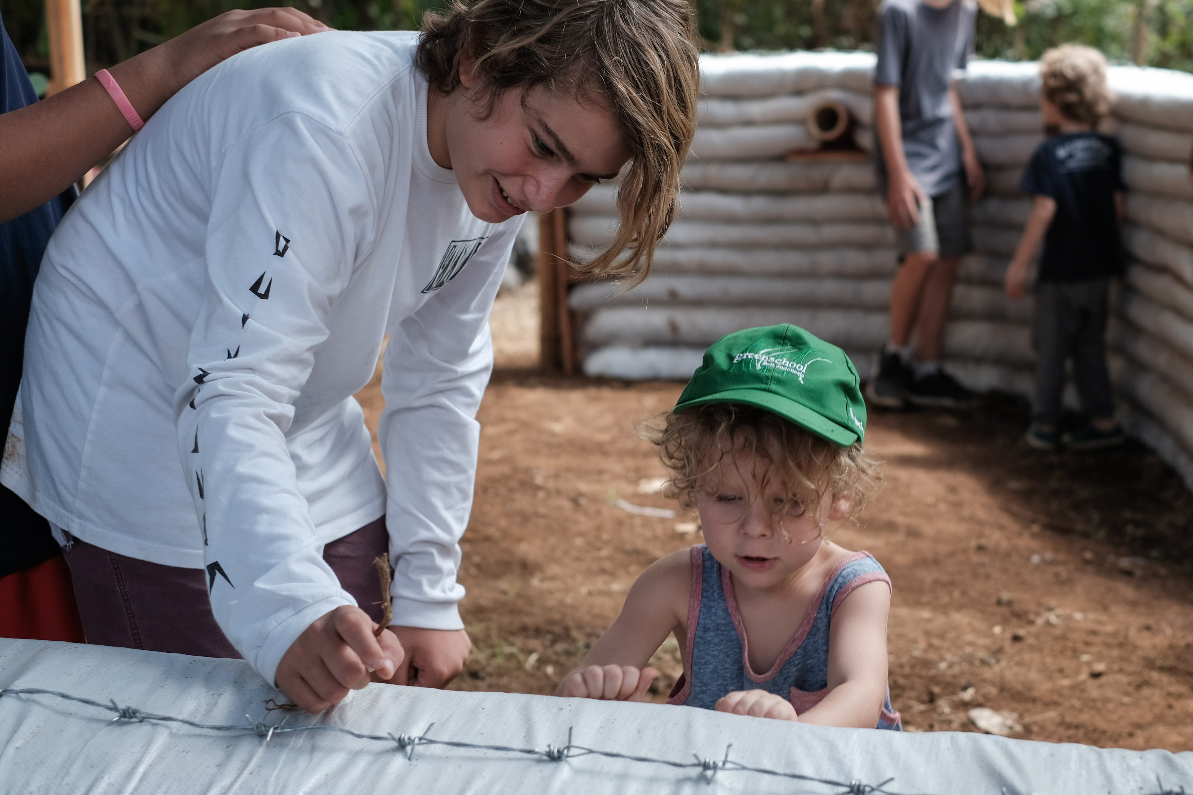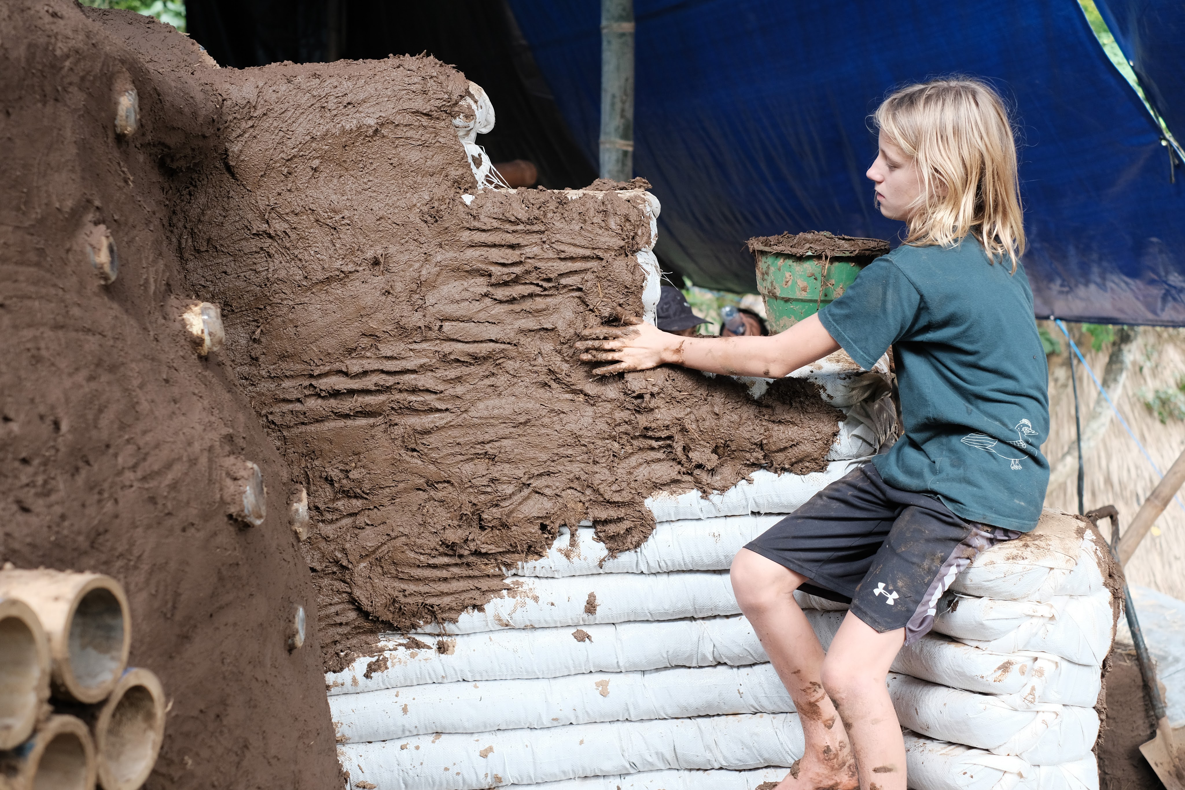 And a really amazing part is that anyone can help, we worked with 200 kids from Kindergarten to High school to build this space. From filling bags, tamping, to plastering with earthen plaster.