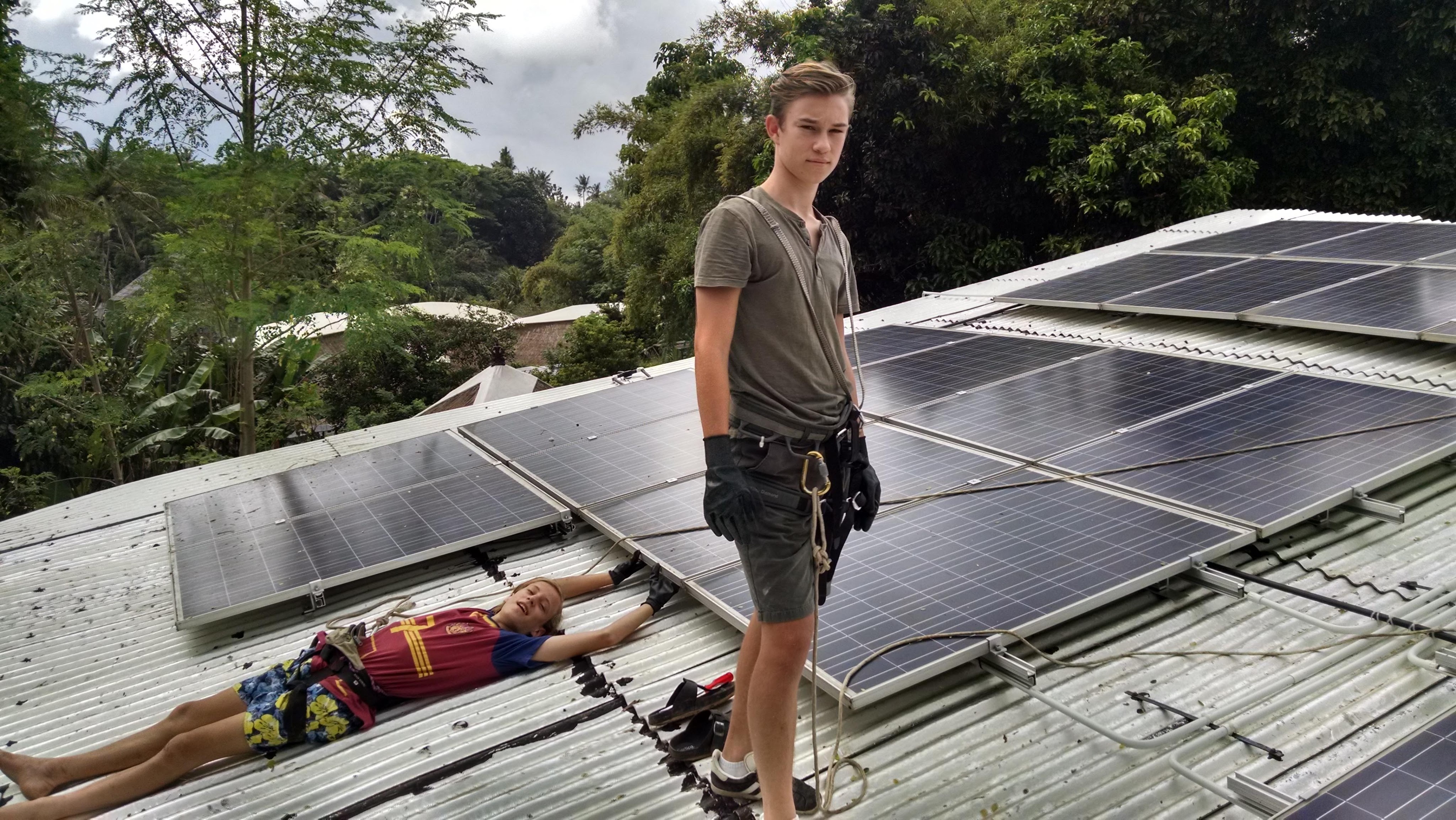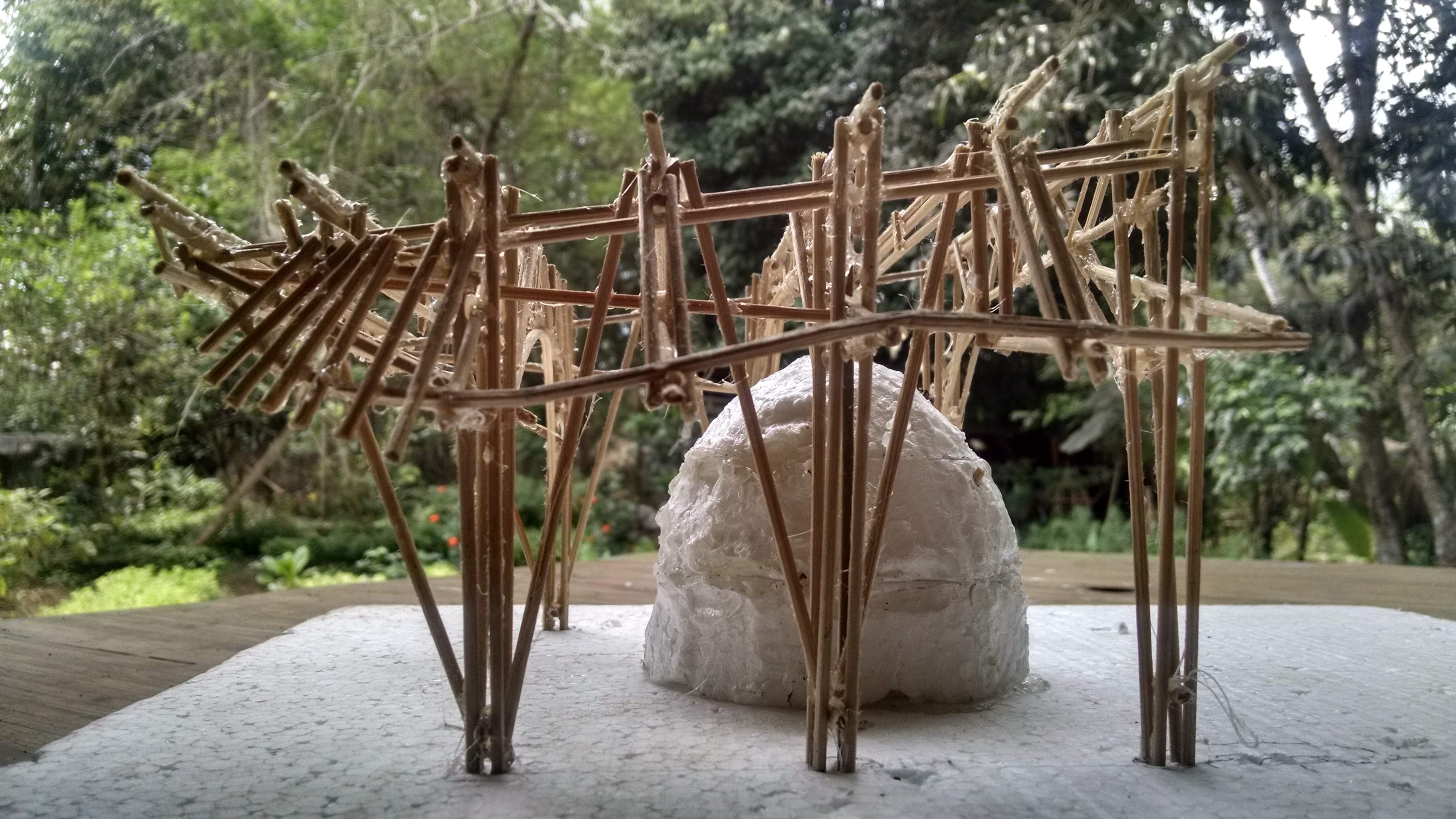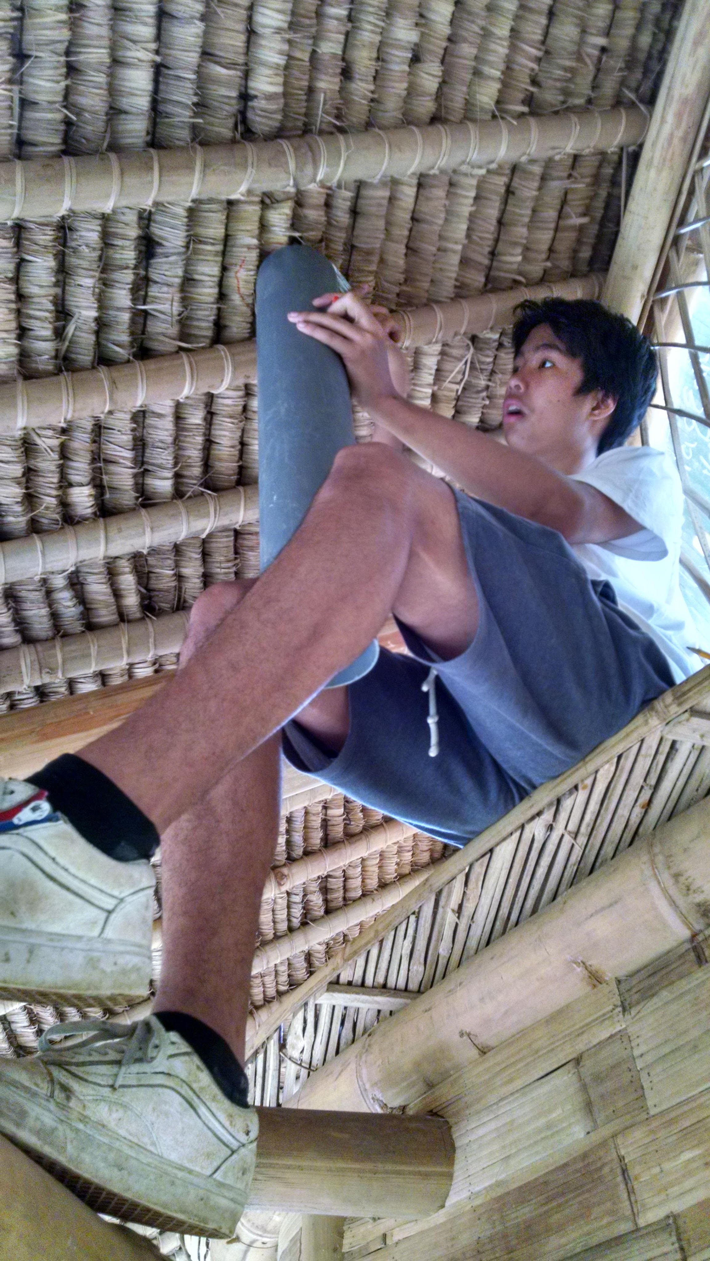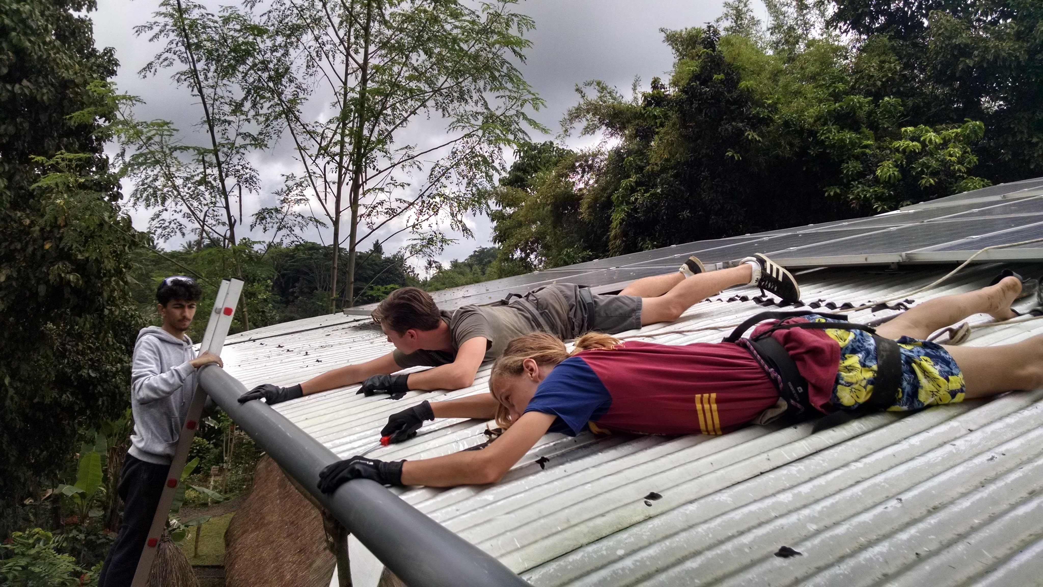 OROS, Operation Rain or Shine. This was a unique Student project using many types of bamboo in innovative ways to create a stacked function roof. It had to be strong and flat enough to hold a large PV solar array (40 Panels) and a large area rain water collection for micro hydro and water storage.