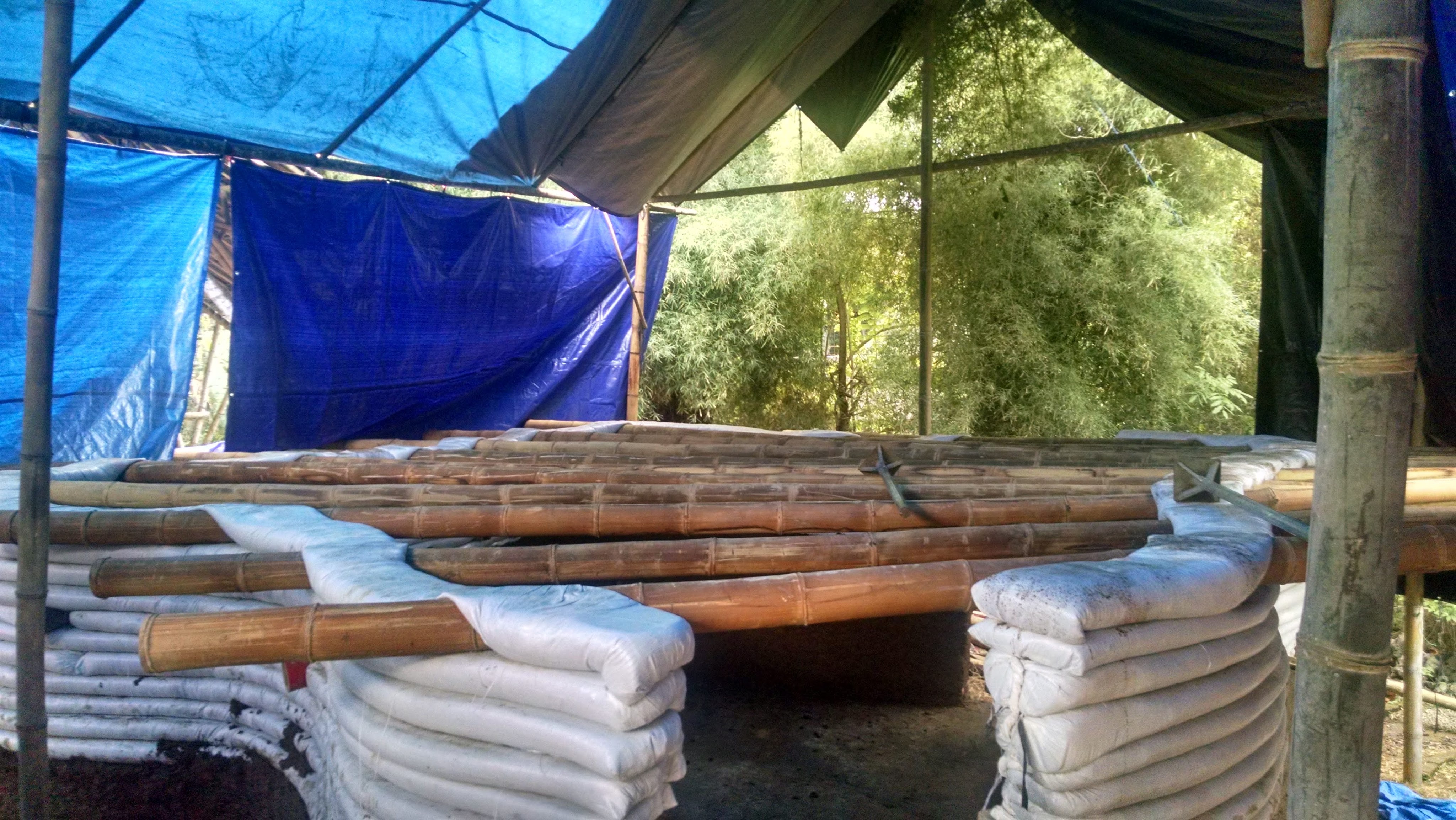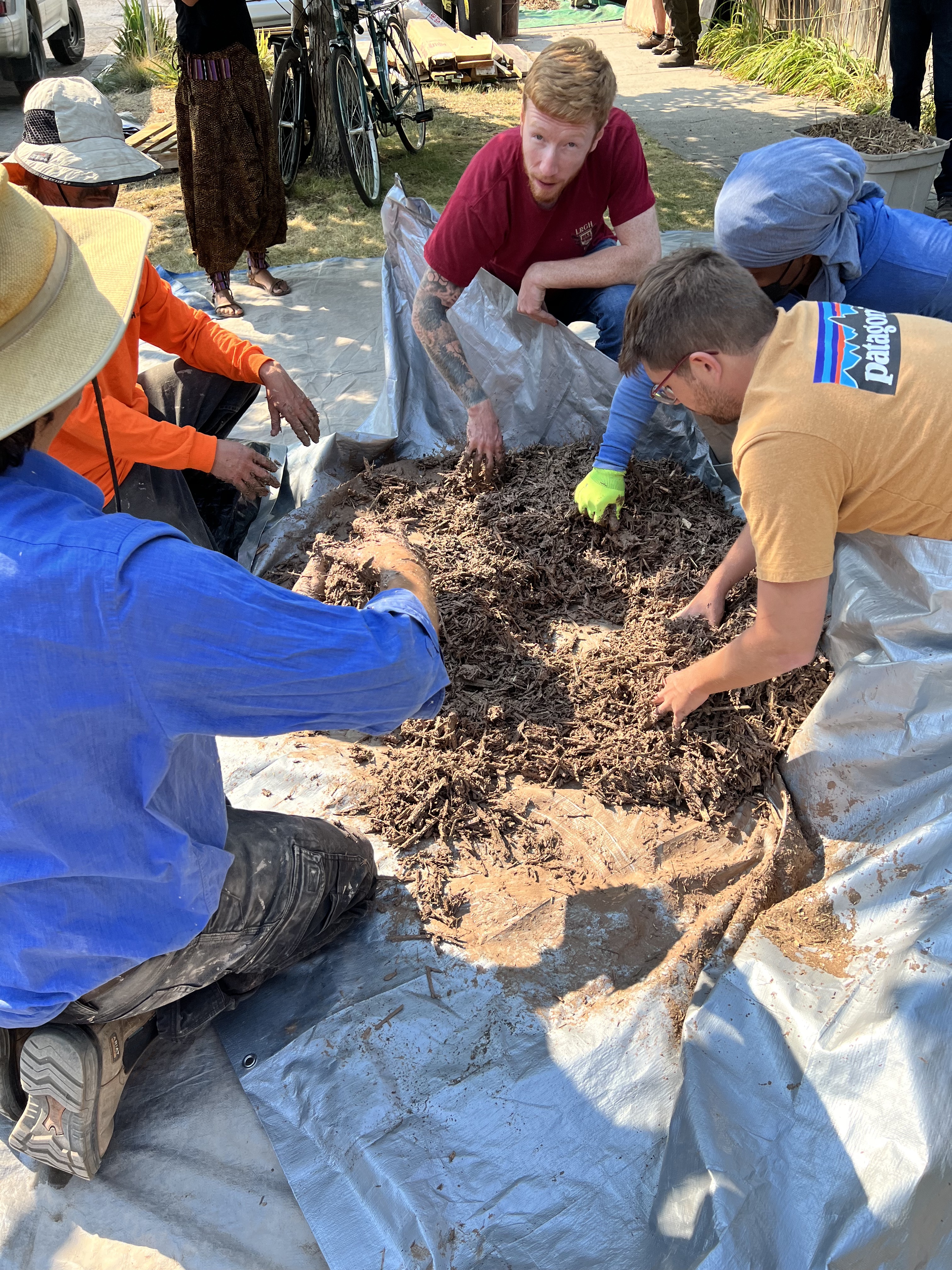 We have used this technique with chipped forest thinning materials that included the bark, pine needles and woody branches. We have used agricultural waste like, rice hulls, wheat, barley, and rice straw in different thicknesses and proportions depending on the needs of the bioregion.