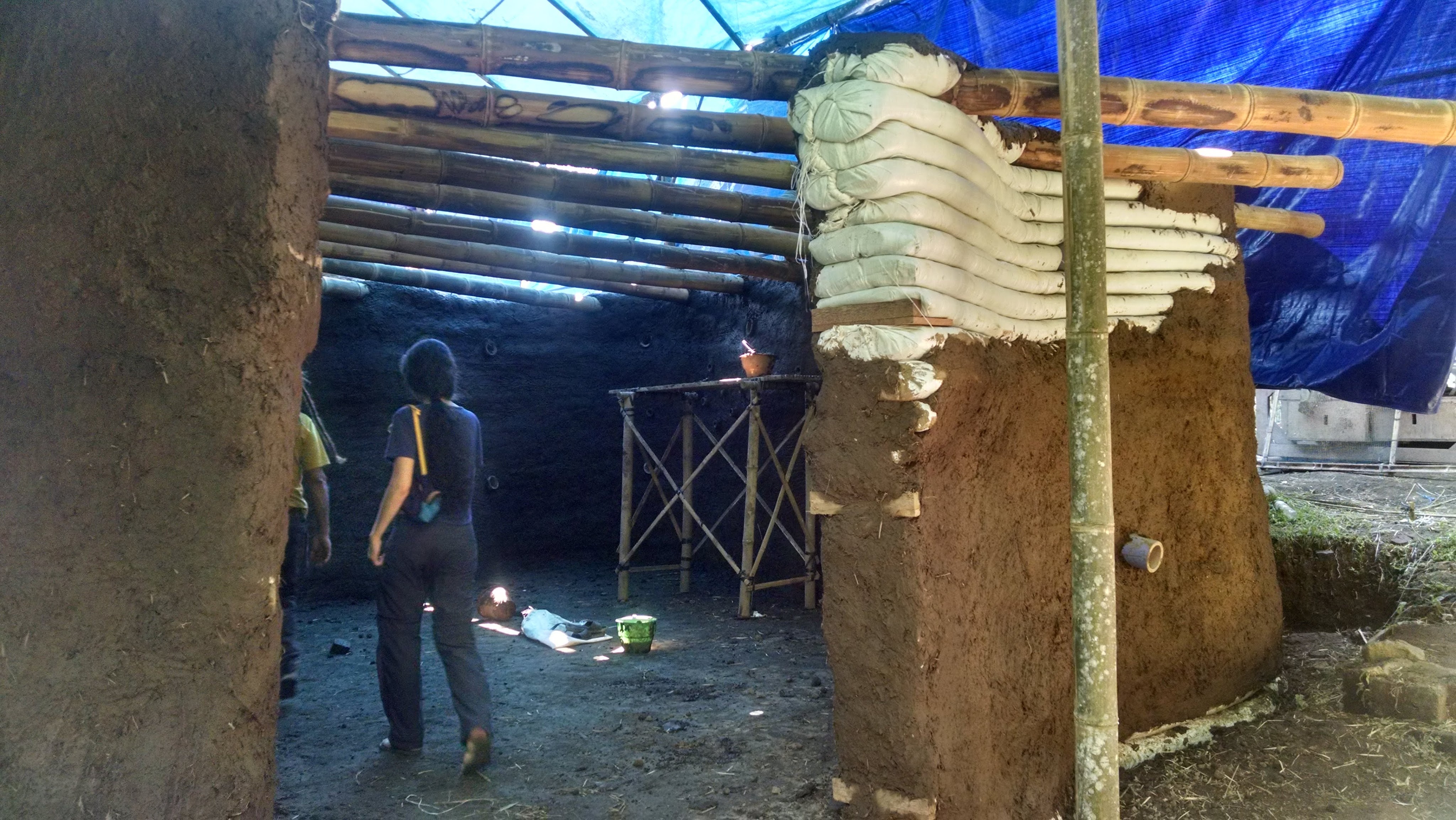 It had a traditional grass roof skirt around the lower sides to protect the space from driving rain and make a solar convection cooling system.