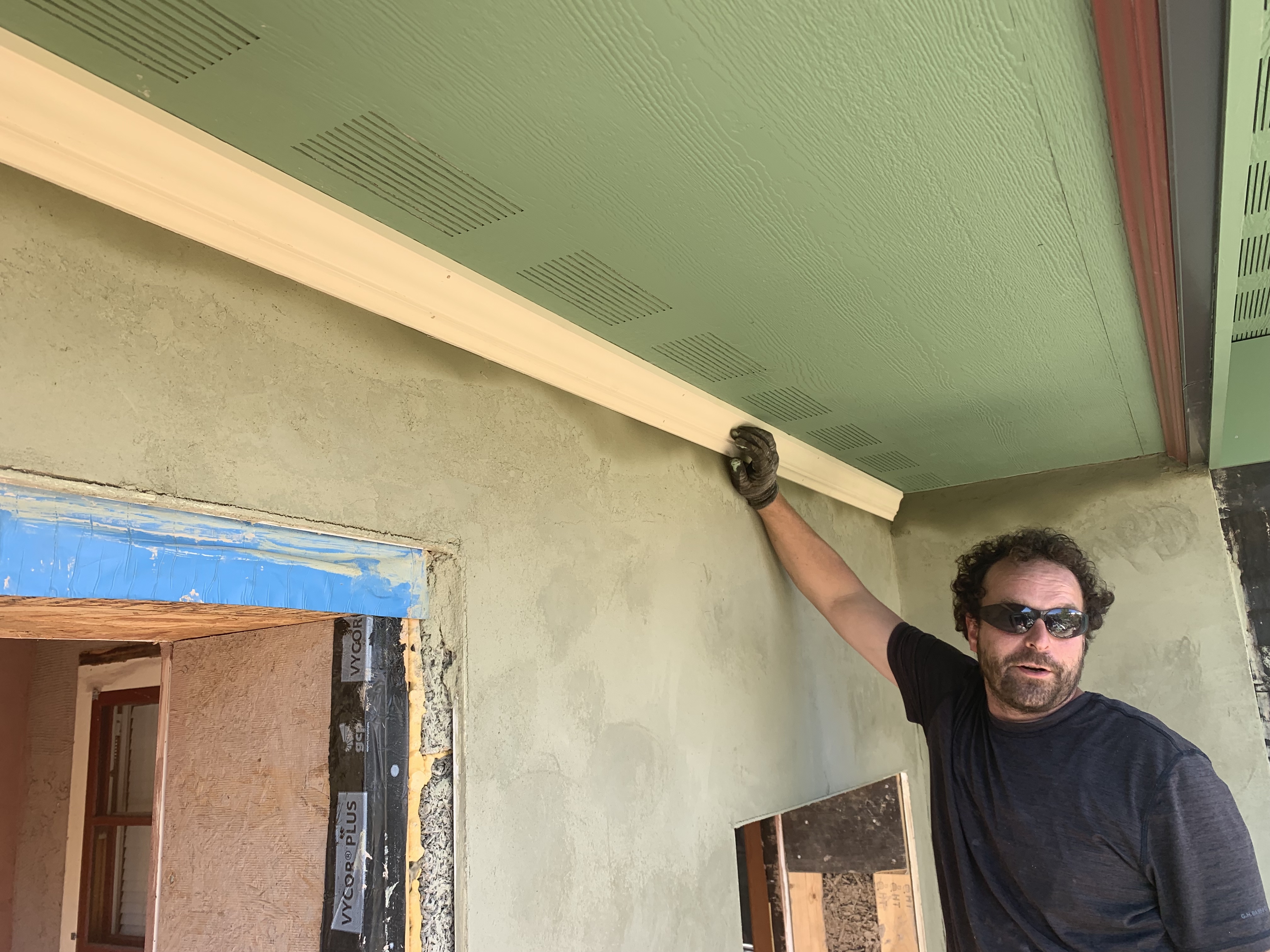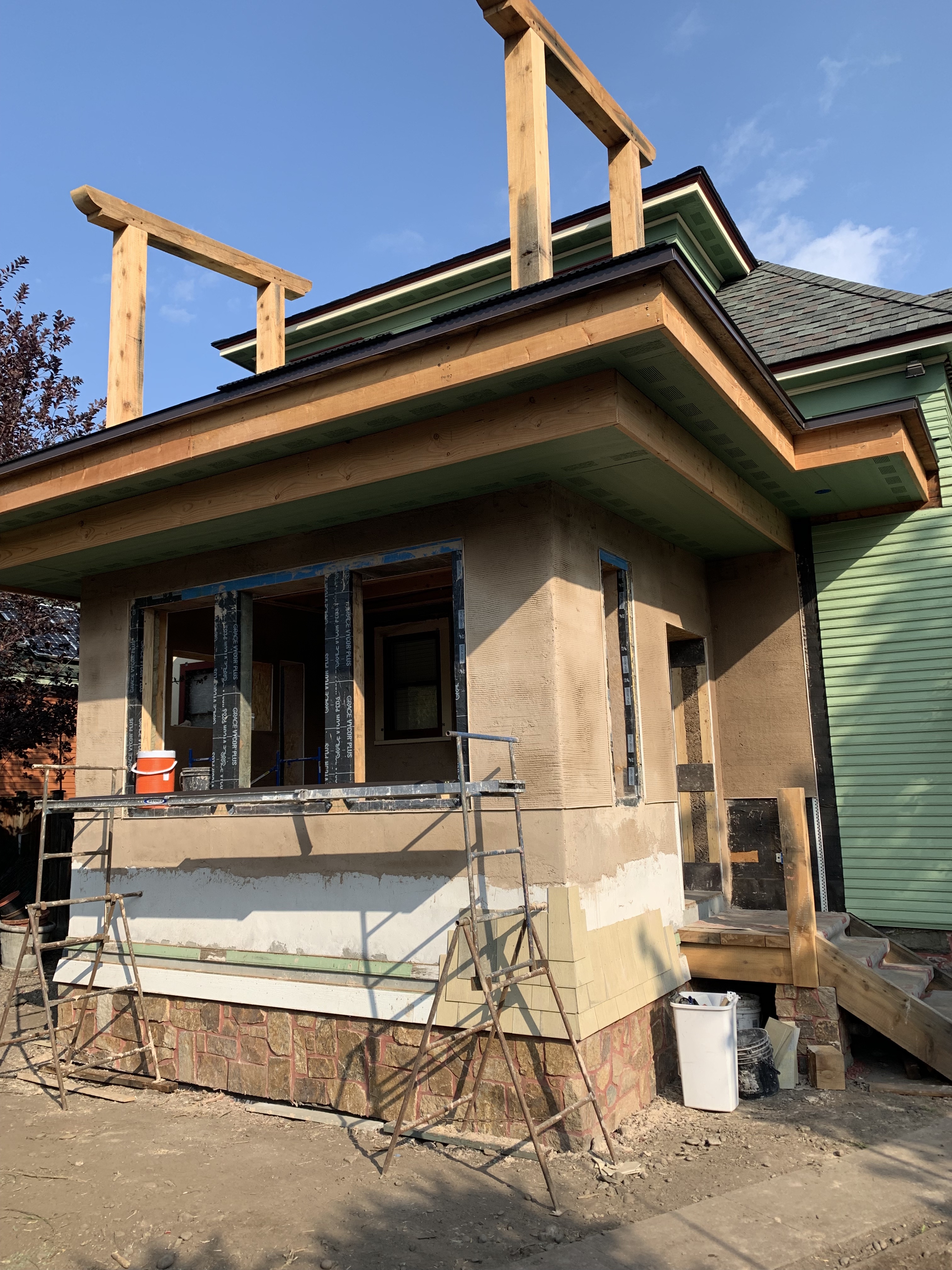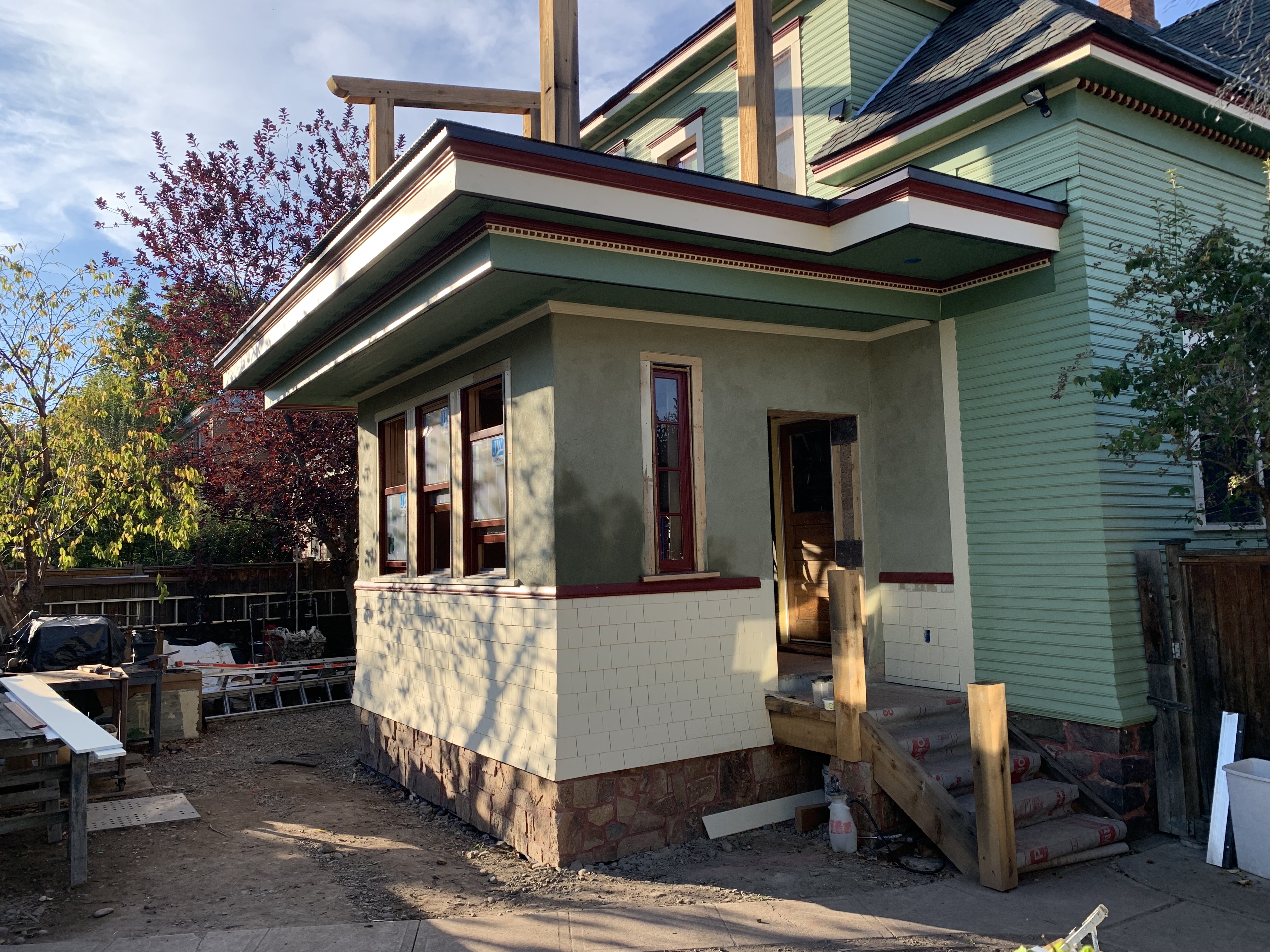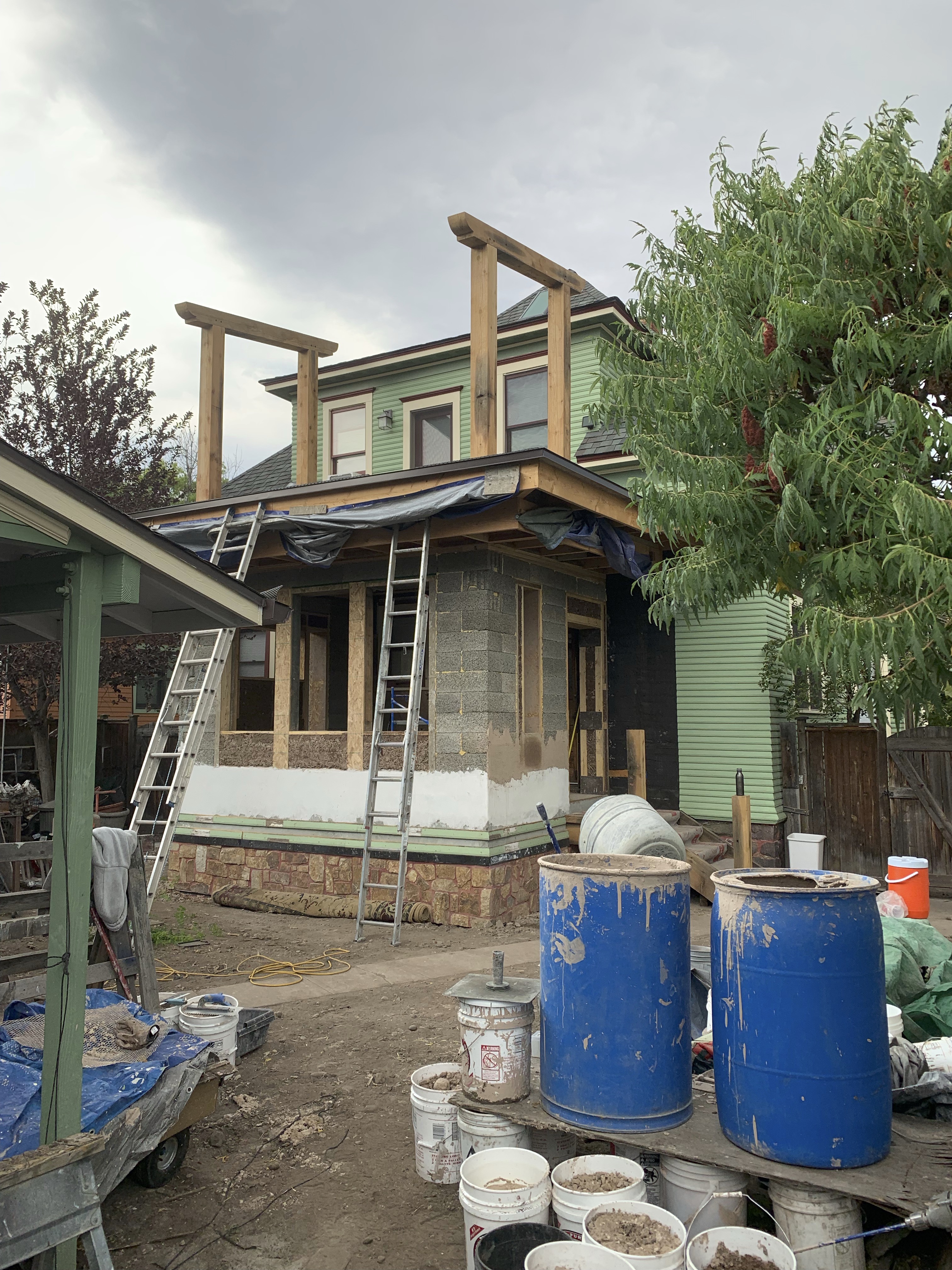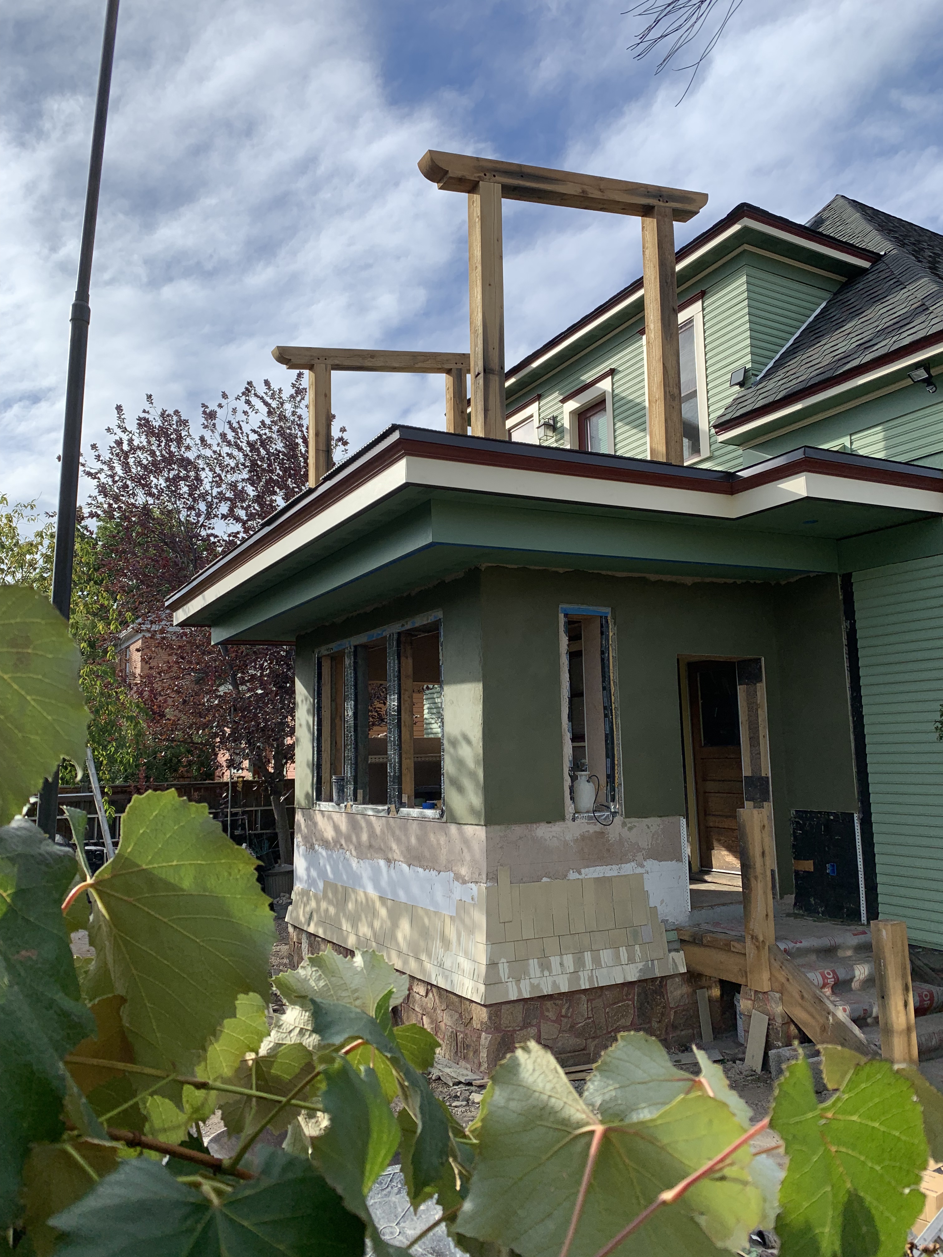 The Anthony residence is a beautifully restored historic home from 1903. The project was to deconstruct a dilapidated back porch and replace it with a new sunroom using a permaculture design approach to stack functions. The historic nature of the house and neighborhood created some interesting challenges. We borrowed design elements from historically significant houses in the area as well as from the unique character pieces of the restored part of the house. We set out to use a small footprint of only 10x14ft and get as much as we could in a high-performance natural building project. We started with a naturally cooled root cellar for food storage, a sunroom for added living space on the house’s south side that would stay cool in the summer, a rooftop living space and garden, a pergola for shade to cool the space and support a PV solar array that the old house could not carry.