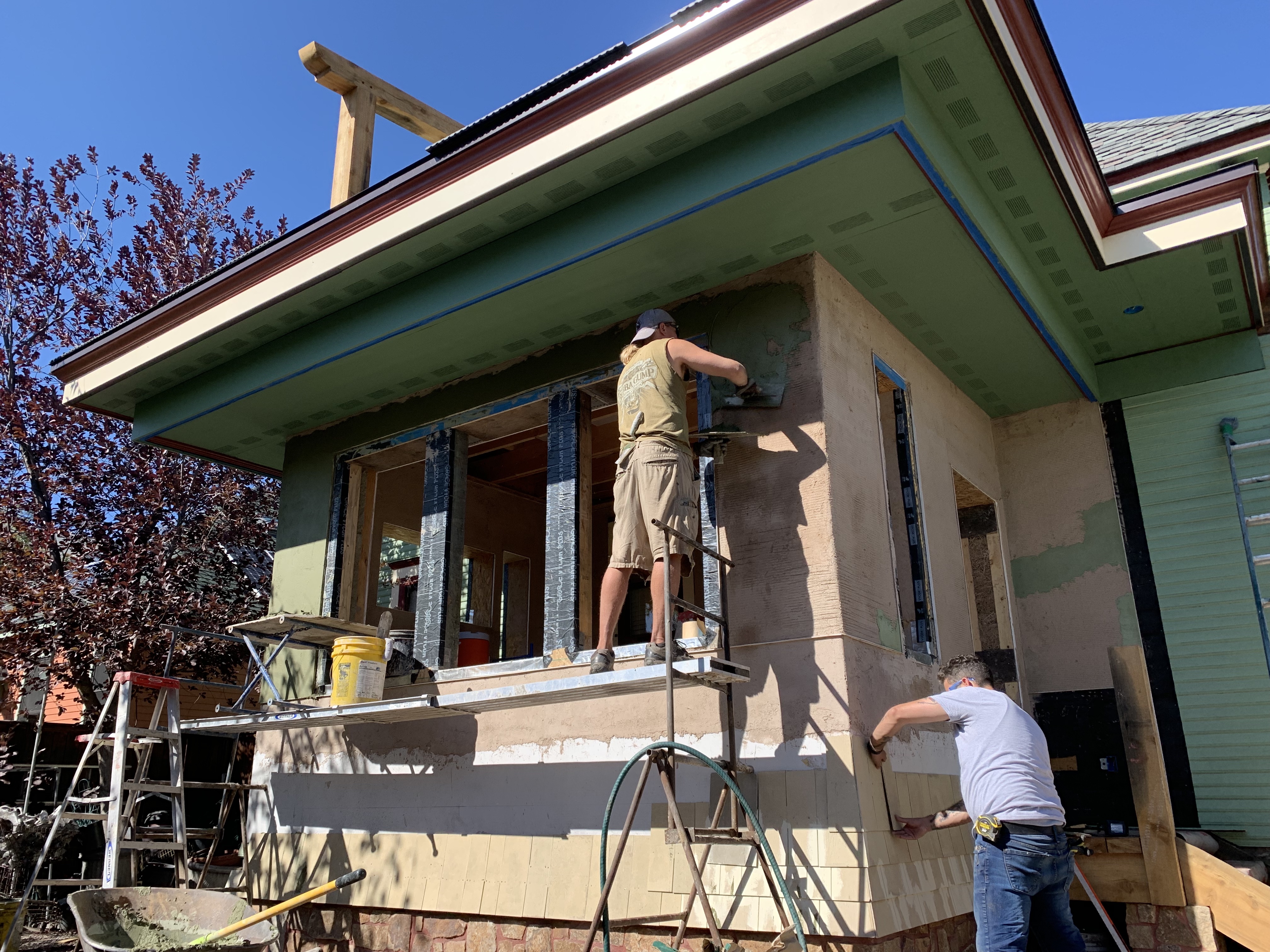 We worked with our Beyond Building team, Bryan’s Bobcart and Excavation Services, Hometown Electric, Western Stucco and Plastering, Zoula Masonry Services and did a demonstration and workshop for students from the Missoula College Sustainable Building Program. The project was designed by Fearless Engineering and Beyond Building.